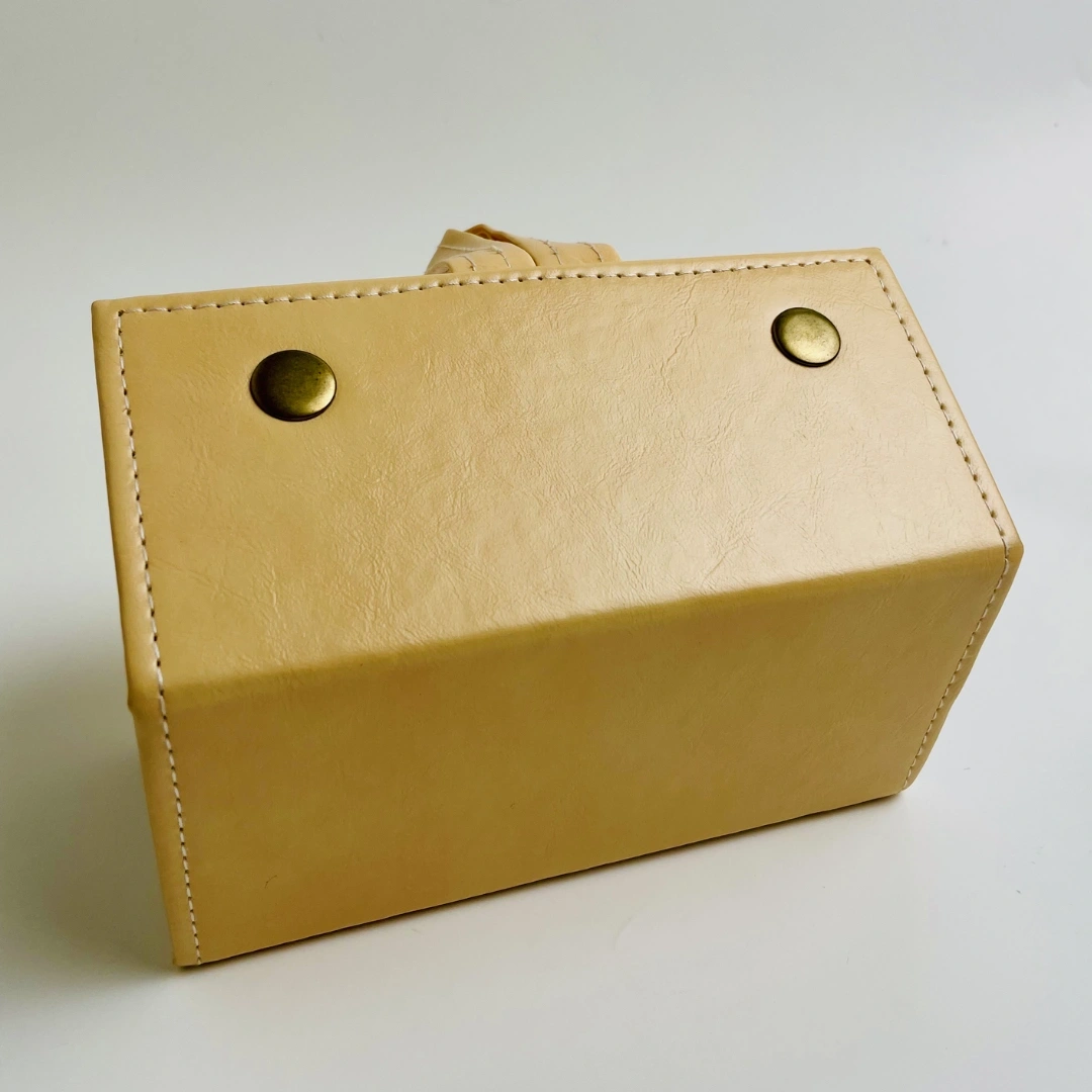 Elegance Meets Utility Wrapped in a rich, textured cobalt cream vegan leather with contrasting white stitching, this case is as much a fashion statement as it is a utility item. The brass-toned snap buttons provide a secure closure and a touch of vintage charm, while the integrated hanging strap allows you to display your collection vertically when fully unfolded.
