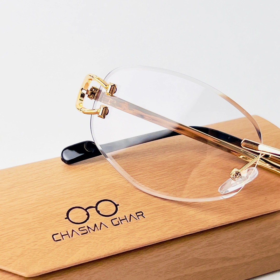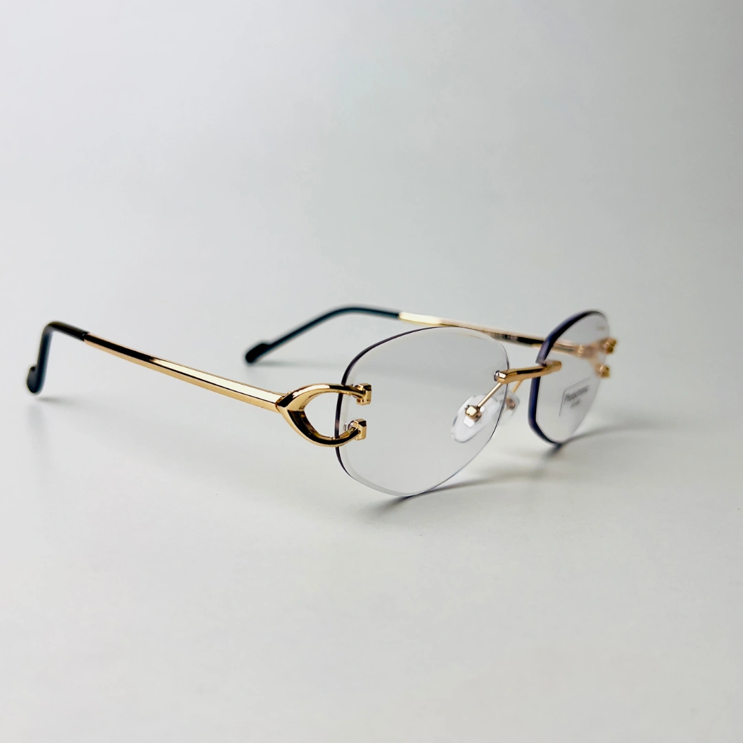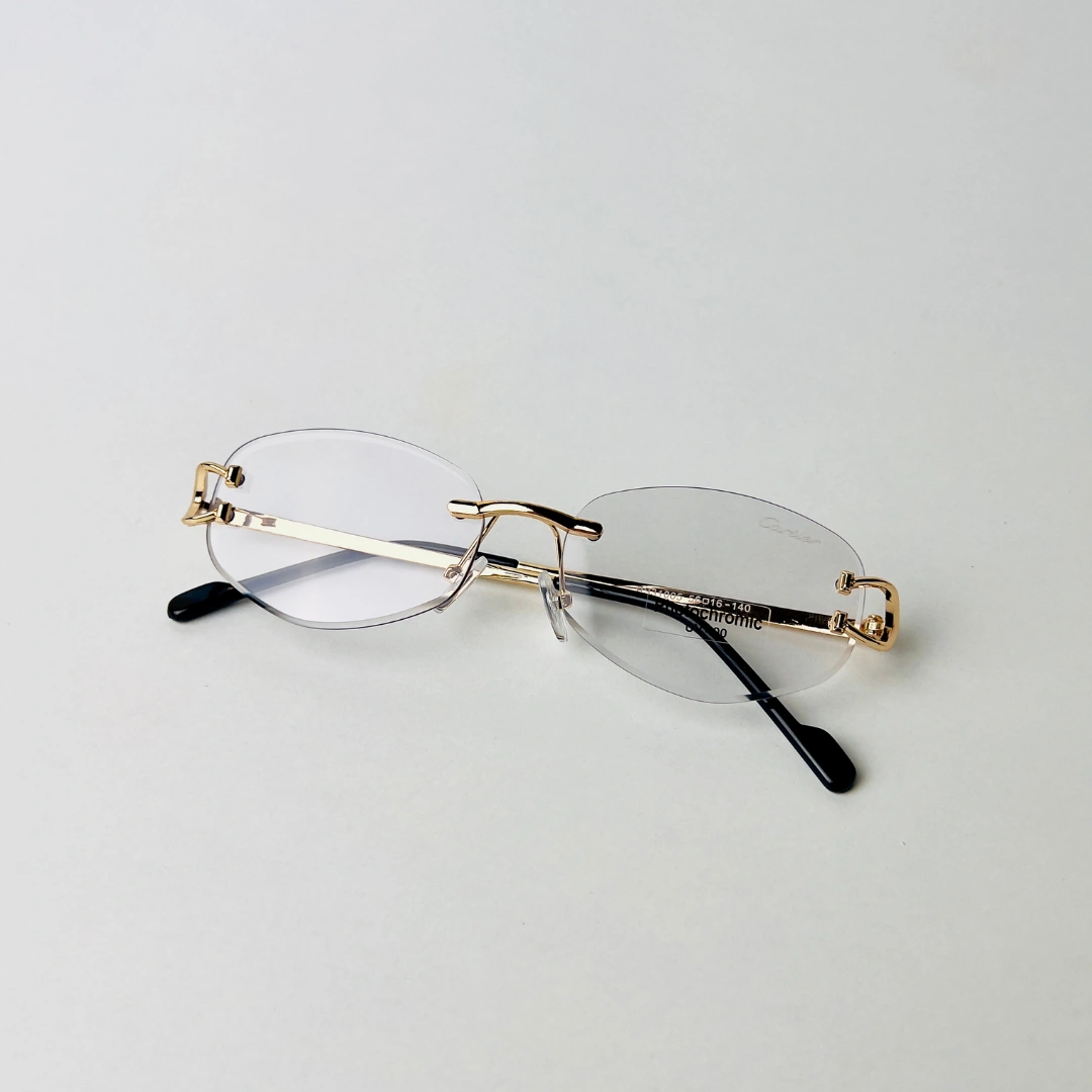 Design & Aesthetics: These glasses embody minimalism. The rimless construction provides an airy, weightless appearance, ensuring your natural features remain the focus. The only visible components are the sleek, slender metal bridge and the polished temple hinges and arms, offering a sophisticated, understated aesthetic.