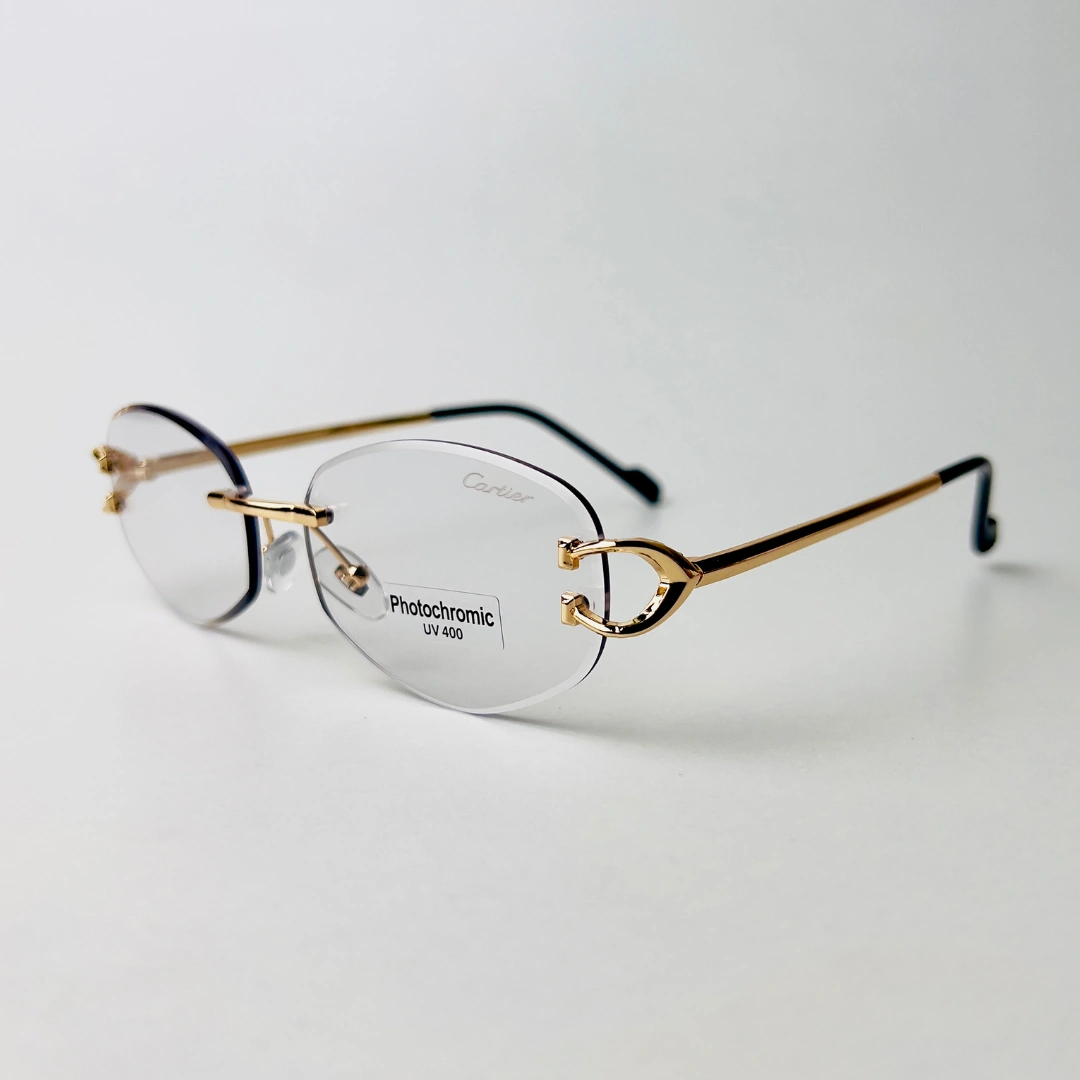 Experience ultimate freedom and clarity with these virtually invisible, rimless glasses. Featuring a minimalist design, the lenses are mounted directly onto the temples and bridge. Crucially, they utilize photochromic technology, allowing the lenses to darken automatically in sunlight for seamless protection and convenience.