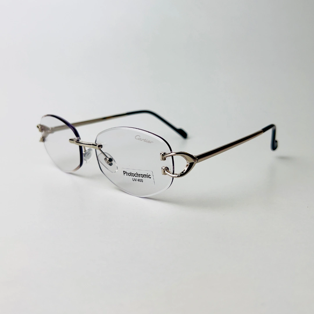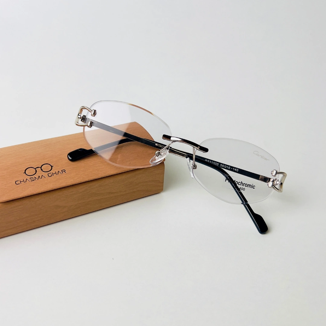 Experience ultimate freedom and clarity with these virtually invisible, rimless glasses. Featuring a minimalist design, the lenses are mounted directly onto the temples and bridge. Crucially, they utilize photochromic technology, allowing the lenses to darken automatically in sunlight for seamless protection and convenience.