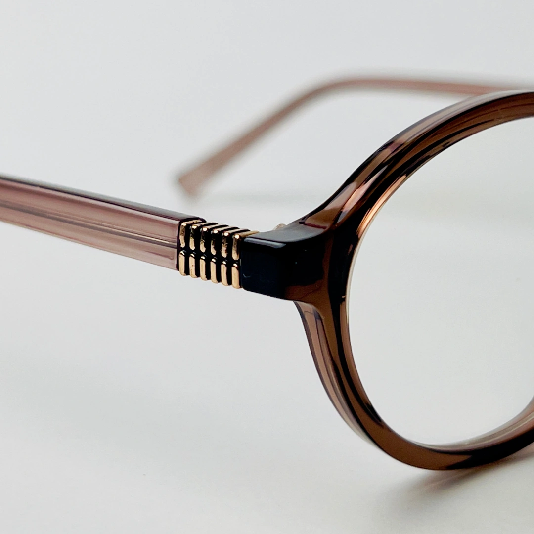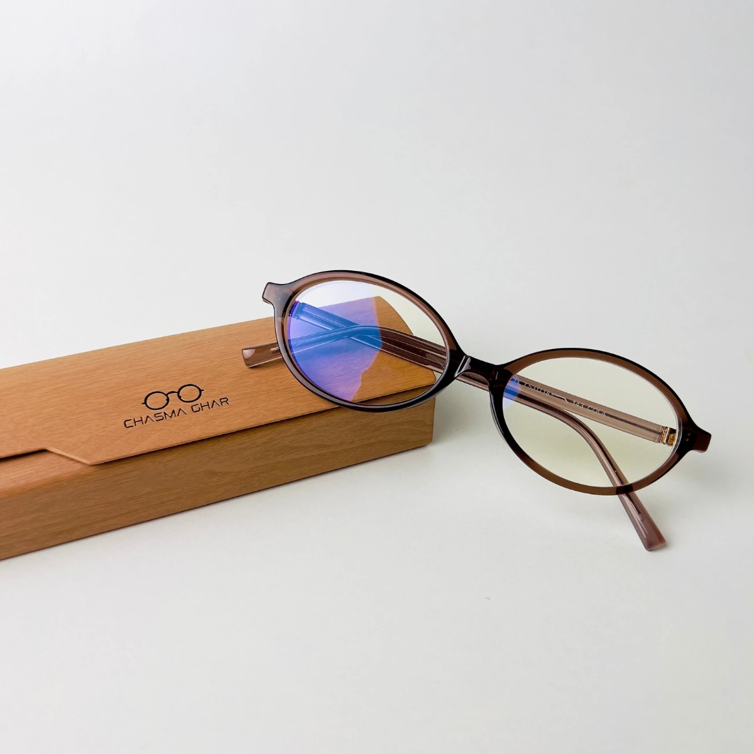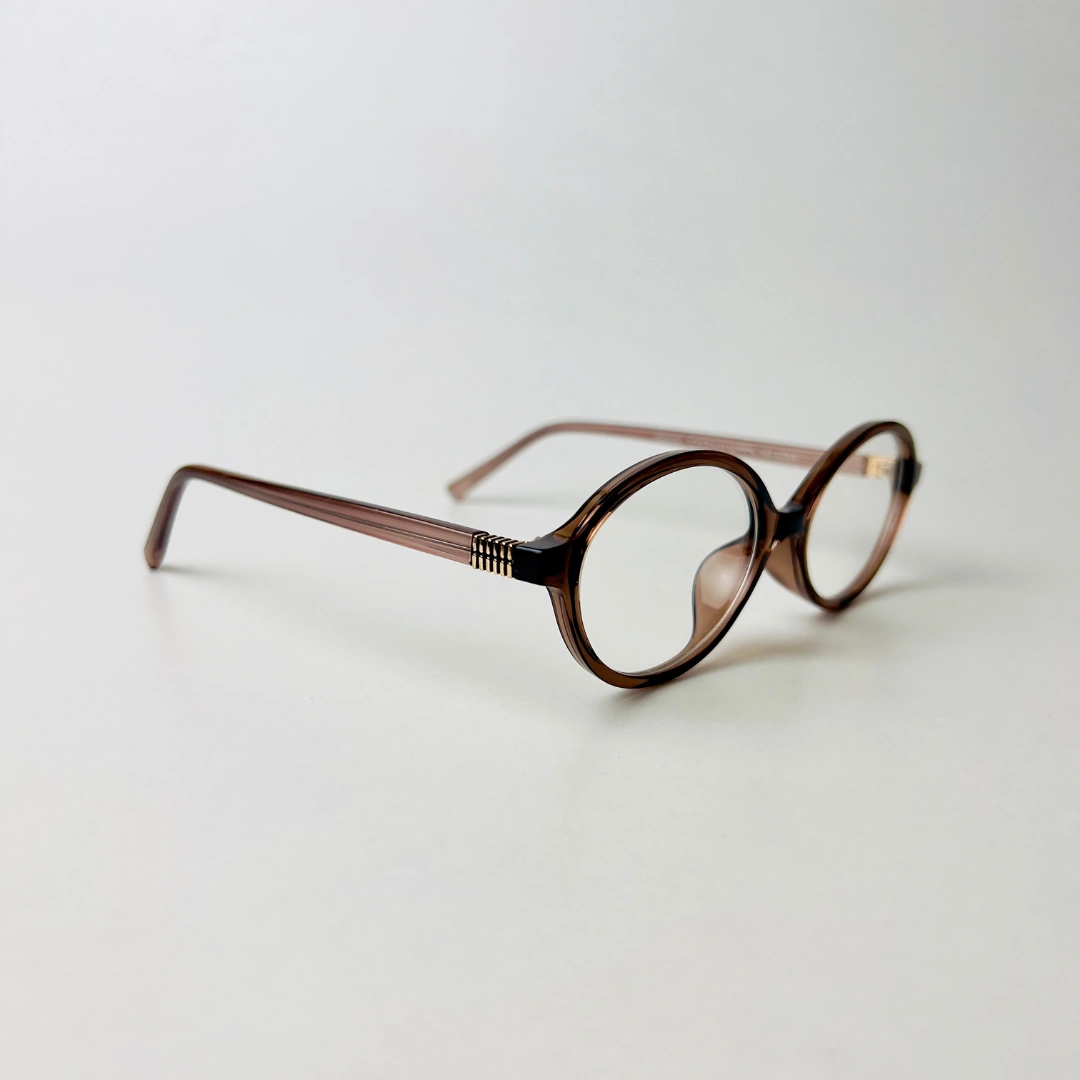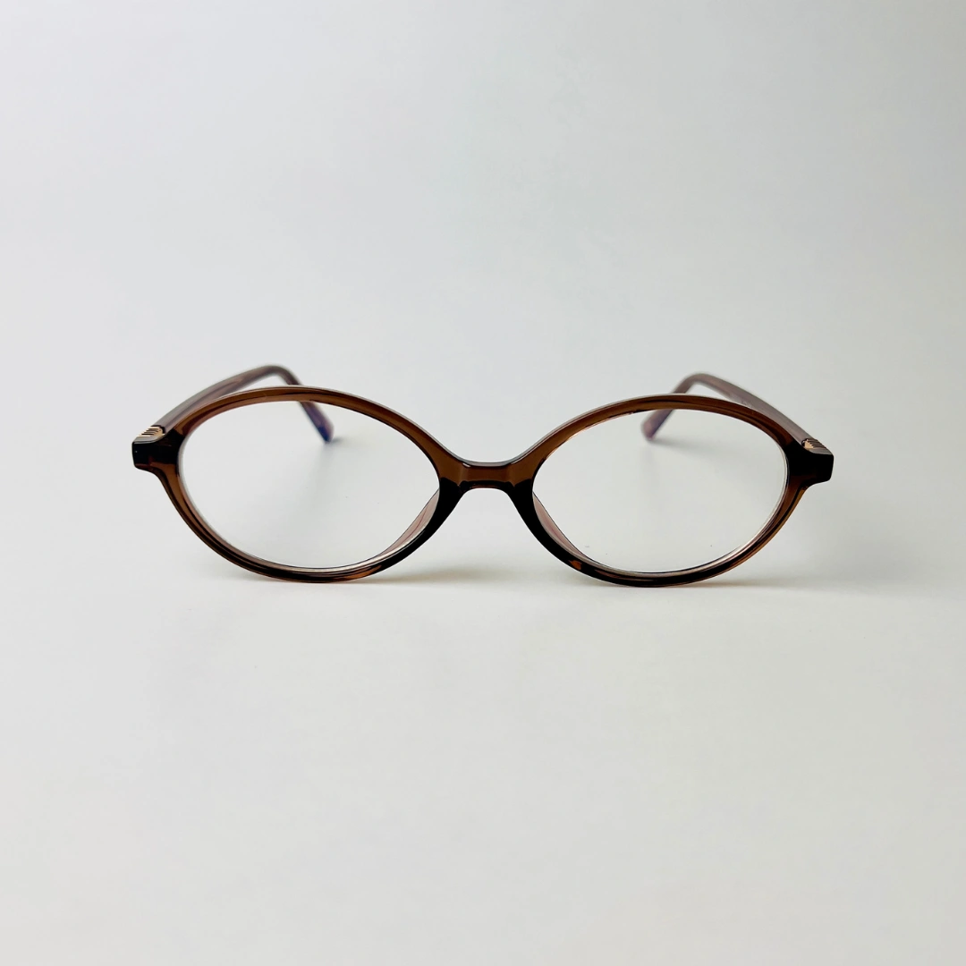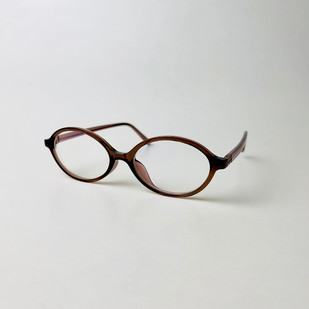 Slim oval eyeglasses with a brown frame and blue light filtering lenses—crafted for clarity and comfort.