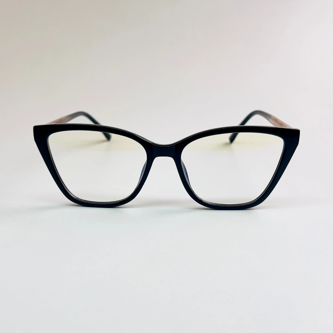 Make a sophisticated statement with these highly angular and sculpted frames. Featuring an ultra-sharp cat-eye profile and an elevated brow line, these glasses offer a powerful, contemporary look. The glossy finish accentuates the dramatic, geometric shape.