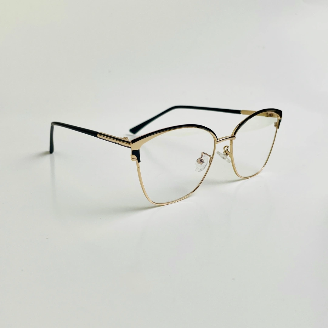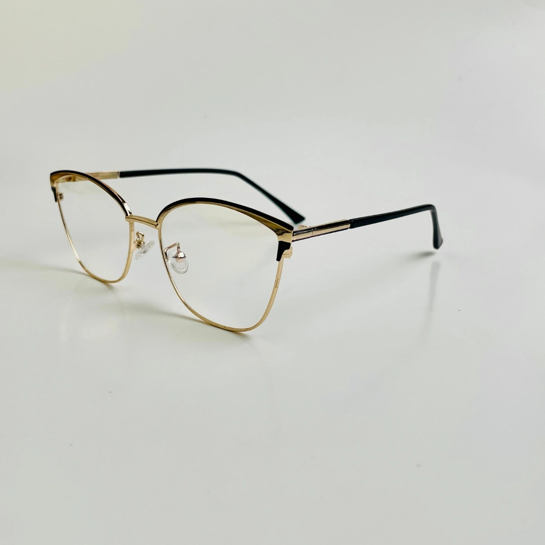 Sophistication in Every Detail The Nova Cat is designed for those who want their eyewear to be an extension of their personal style. These frames strike the perfect balance between vintage charm and contemporary minimalism. The delicate gold-toned metal rims provide a luminous quality to the face, while the bold black "brow" accents add definition and a touch of drama to the classic cat-eye shape.